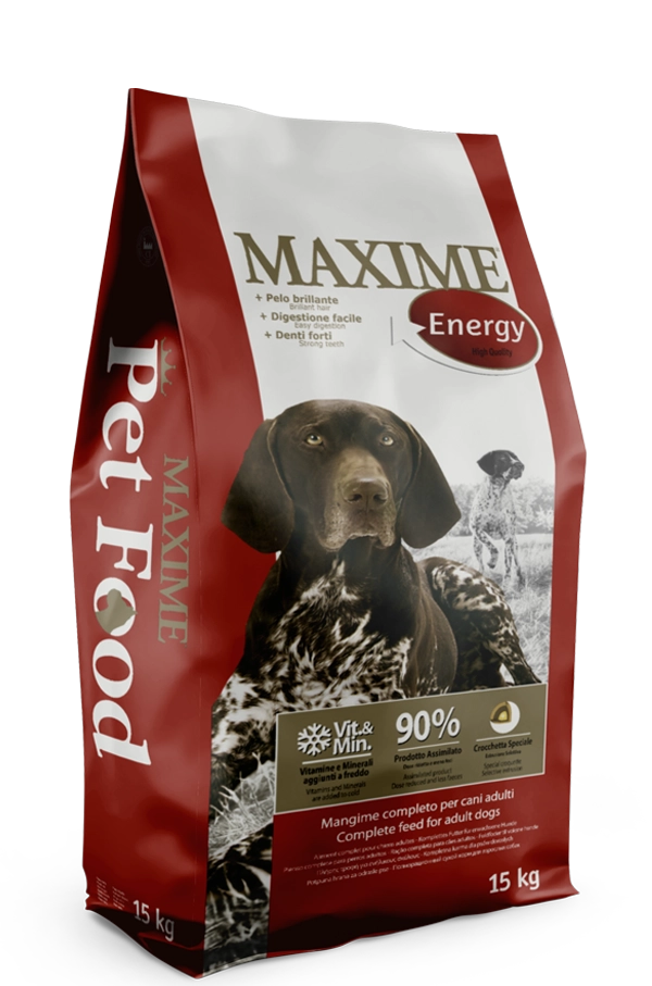 ماكسيم إنيرجي هو غذاء متكامل مصمم للكلاب البالغة من جميع السلالات التي تمارس نشاطًا بدنيًا عاديًا.